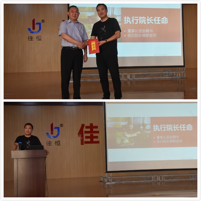 啟動(dòng)儀式上,佳恒集團(tuán)董事長(zhǎng)金波向總經(jīng)理?xiàng)罾^頒發(fā)聘書(shū),任命其為商學(xué)院執(zhí)行院長(zhǎng)。楊繼發(fā)表了就職發(fā)言,表示:將擔(dān)負(fù)責(zé)任,做好表率,堅(jiān)持學(xué)習(xí),帶頭把學(xué)習(xí)到的知識(shí)應(yīng)用到工作中,開(kāi)展好“學(xué)習(xí)型企業(yè)”建設(shè)。