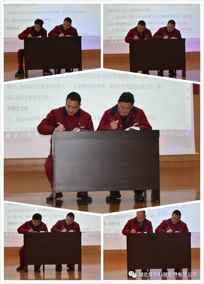 會(huì)上,公布了2021年度工作計(jì)劃與措施,并進(jìn)行了目標(biāo)分解,總裁與總經(jīng)理、總經(jīng)理與副總經(jīng)理及各位總助分別簽訂了2021年度目標(biāo)責(zé)任書。